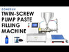 This is a screw pump filling machine. The machine has a strong performance. It can smoothly transport and fill the liquid and high-viscosity paste with particles. It is widely used in various industries such as chemical, industrial, and food processing, for dispensing liquids with particles including sauce, syrup, juice, dairy products, and so on.